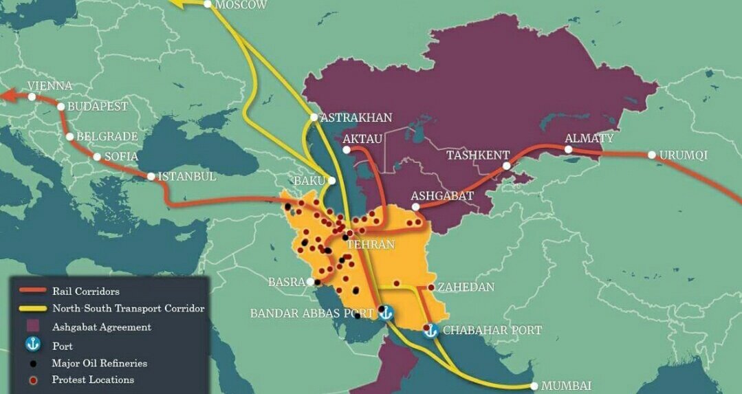 olduğu noktalar İran'da mevcut bulunan petrol rafinerileri, Kuzey Güney Ticaret